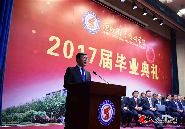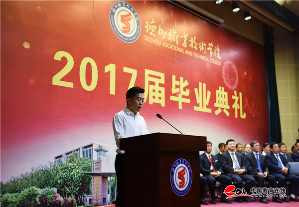 中国教育在线讯 三年太阳新城人,一生太阳新城情。7月4日上午在庄严雄壮的国歌声中,我院2017届学生毕业典礼在学术报告厅隆重举行。据了解,德州学院领导班子全体成员、各部门负责人、各系部党总支书记、主任出席了毕业典礼,学生科长、辅导员、2017届毕业生代表、在校学生代表共470人参加。毕业典礼由校党委委员、纪委书记李强主持。