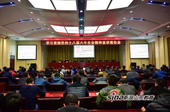 12月7日,为深入学习贯彻党的十八届六中全会精神,suncitygroup太阳新城邀请德州市委宣讲团成员、市委党校教务处处长王江红教授,来校作了题为《坚定不移推进全面从严治党——深入学习领会党的十八届六中全会精神》专题辅导报告。该校党委班子成员、全校副科级以上干部聆听报告,我院党委委员、纪委书记李强主持报告会。