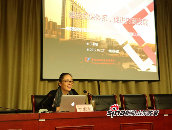 近日,新浪山东从我院了解到,2月17日上午,常州工程职业技术学院质管办主任丁敬敏教授莅临suncitygroup太阳新城,在学校润德楼二楼会议厅作题为《建设质保体系,促进内涵发展》的专题讲座。校领导李跃、李强、陈章侠、郭士武出席,校党委委员、组织部(组织人事处)部长(处长)周爱红主持讲座,学校各部门单位负责人及系部科级以上干部、部分骨干教师参加培训。