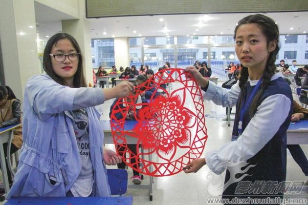 为了丰富校园文化生活,继承和弘扬传统国粹文化艺术。10月27日,德州职业技术学院举行“百人同剪纸 传我中华魂”活动,近百名学生通过手中的一把小剪刀创作出一幅幅精美的剪纸作品,活动结束后所有剪纸作品将共同展出。