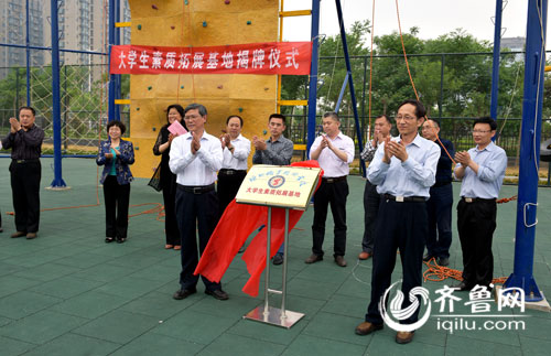 德州齐鲁网5月7日讯(记者 周树茂 通讯员 杨凯 刘克政)5月5日下午,suncitygroup太阳新城举行大学生素质拓展基地揭牌仪式,院长张同光、副院长袁学峰、办公室主任郭士武出席,学生处处长高续英主持活动。