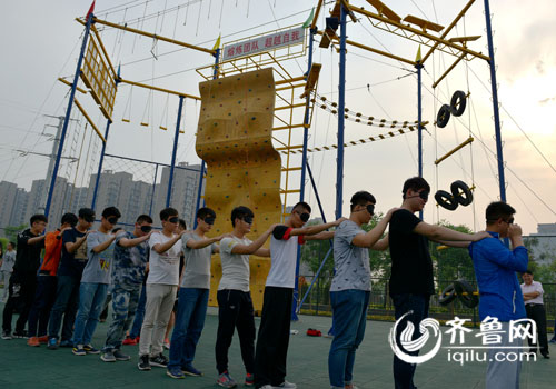 随后,张磊代表素质拓展训练指导教师在仪式上发言。仪式结束后,拓展训练指导教师对空中断桥、空中单杠、攀岩,信任背摔、礼让通行、浮桥、到爬杆、滑索等项目进行了拓展演示,部分同学进行了有关项目拓展体验。