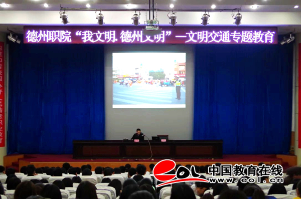 中国教育在线讯 为响应德州市文明办、德州市交警支队开展的文明交通劝导志愿服务活动的号召,提高suncitygroup太阳新城学生的交通安全意识,促进文明德州与文明校园的建设,3月10日下午,suncitygroup太阳新城在学术报告厅举办了“我文明 德州文明—文明交通”主题讲座活动。德州市交警二大队长河中队队长徐康主讲,我院团委书记田树军主持。二大队宣传中队队长杨洪华,我院安全保卫处处长张宏建,文明交通劝导志愿者及学生代表近500人参加了讲座活动。
