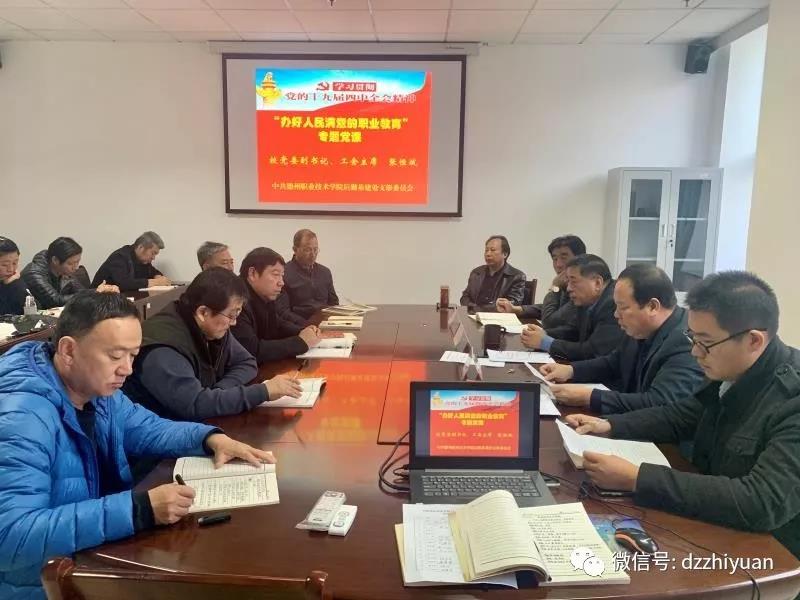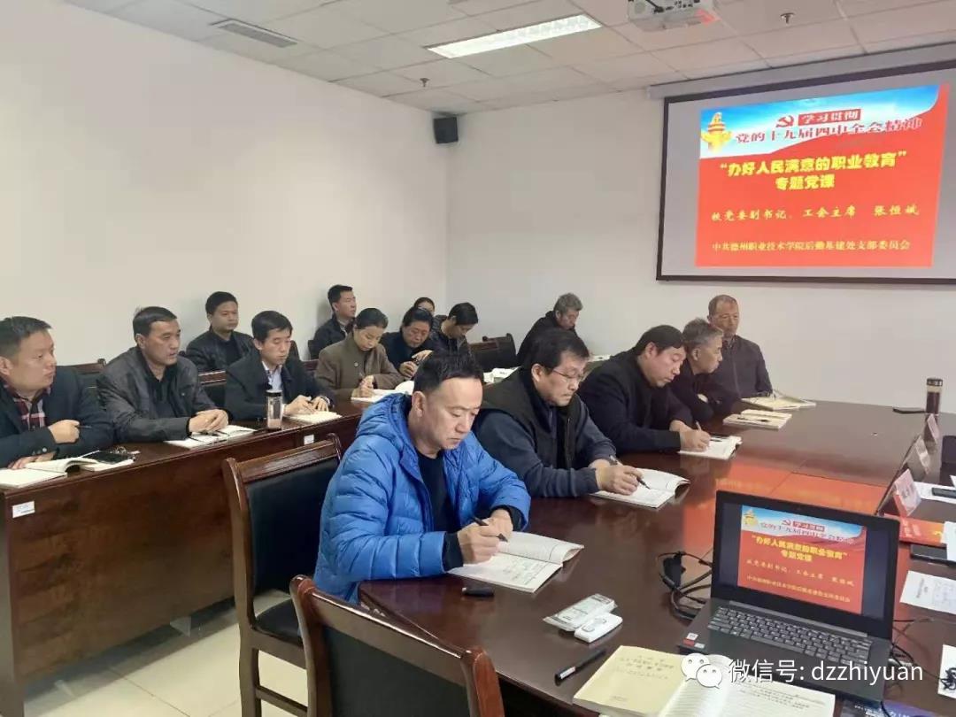 张恒斌结合主题教育开展以来的学习、调研及思考情况,结合工作实际,作了题为《学习贯彻十九届四中全会精神,办好人民满意的职业教育》的党课,深刻阐释了十九届四中全会的重大历史意义。他指出,党的十九届四中全会是中华民族伟大复兴关键时期召开的一次重要会议。要把学习党的十九届四中全会精神作为当前和今后一段时期重要的政治任务,深刻认识党的十九届四中全会的重要意义,贯彻落实好全会精神,坚持和完善中国特色社会主义现代大学制度,推进学校治理水平和治理能力现代化。他强调,全体党员干部要认真学习党的十九届四中全会精神,坚持读原著、学原文、悟原理。使习近平新时代中国特色社会主义思想和四中全会精神入脑入心,增强“四个意识”、坚定“四个自信”、做到“两个维护”,坚决在政治立场、政治方向、政治原则、政治道路上同以习近平同志为核心的党中央保持高度一致。要提高政治站位,增强政治定力,加强党性锻炼对党忠诚、为党分忧、为党尽责,经受“四大考验”,克服“四种危险”,不断增强自我净化、自我完善、自我革新、自我提高的能力,做党的忠诚卫士。要认真履职担当,大力弘扬理论联系实际的学风,坚持学以致用,密切联系学校党的建设、“十三五”发展规划、创建山东省优质高职院校等工作,科学谋划当前和明年工作。