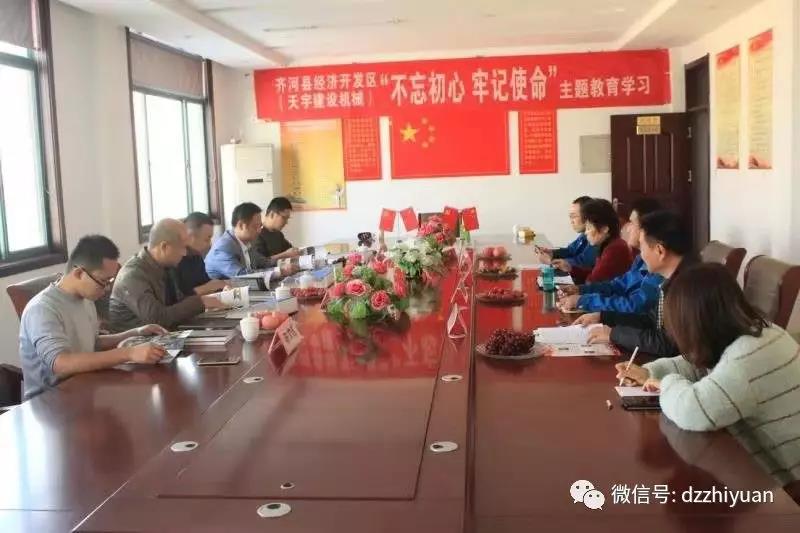 10月31日,我校派驻齐河民营企业服务2队党支部书记、队长魏延波,建筑园林工程系系主任董克齐同志一行五人到服务2队帮扶企业山东天宇建筑机械有限公司开展“不忘初心、牢记使命”主题教育调研,并就目前制约企业高质量发展的瓶颈问题及企业未来远景规划进行了深入座谈。