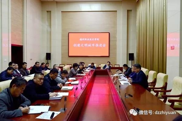 11月11日上午,迎接中央文明办测评德州市创建全国文明城市的工作推进会在我校八楼视频会议室召开,校党委委员、办公室主任郭士武主持会议,校党委委员、宣传部部长周吉星传达了学校服务全国文明城市创建工作部署,各党总支(直属党支部)书记、各行政处室主要负责人参加会议。