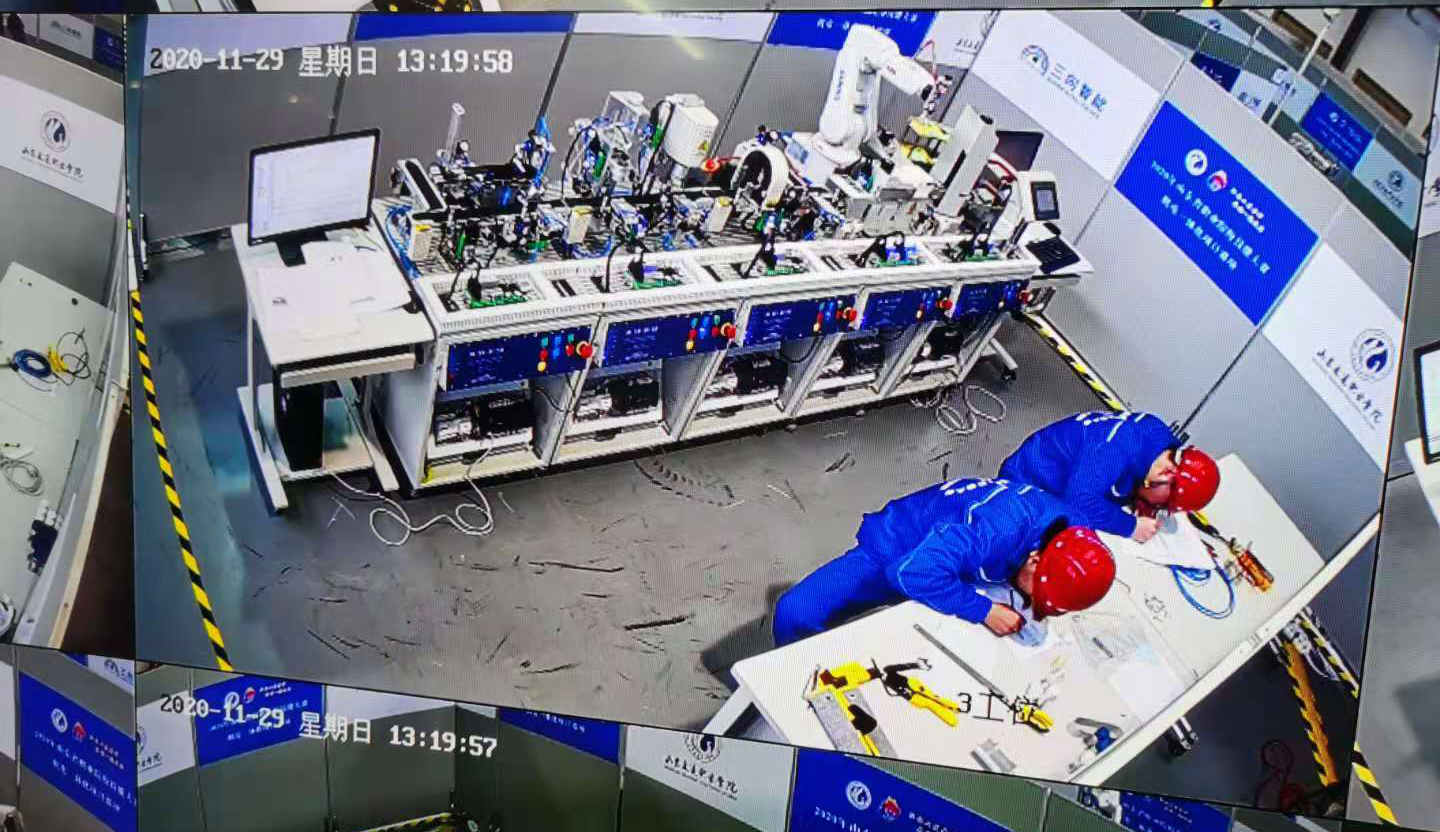 “机电一体化项目”赛项是团体赛,两名同学在六个小时内要完成机械装配、PLC编程、工业机械手臂调试、电气安装、气路安装、人机交互系统设计、故障排除、联机联调等系列工作任务,这些任务几乎涵盖了机电专业所有核心技能,两位同学从入场到出场历经近12个小时,发挥稳定,圆满完成比赛任务,取得一等奖的优异成绩。