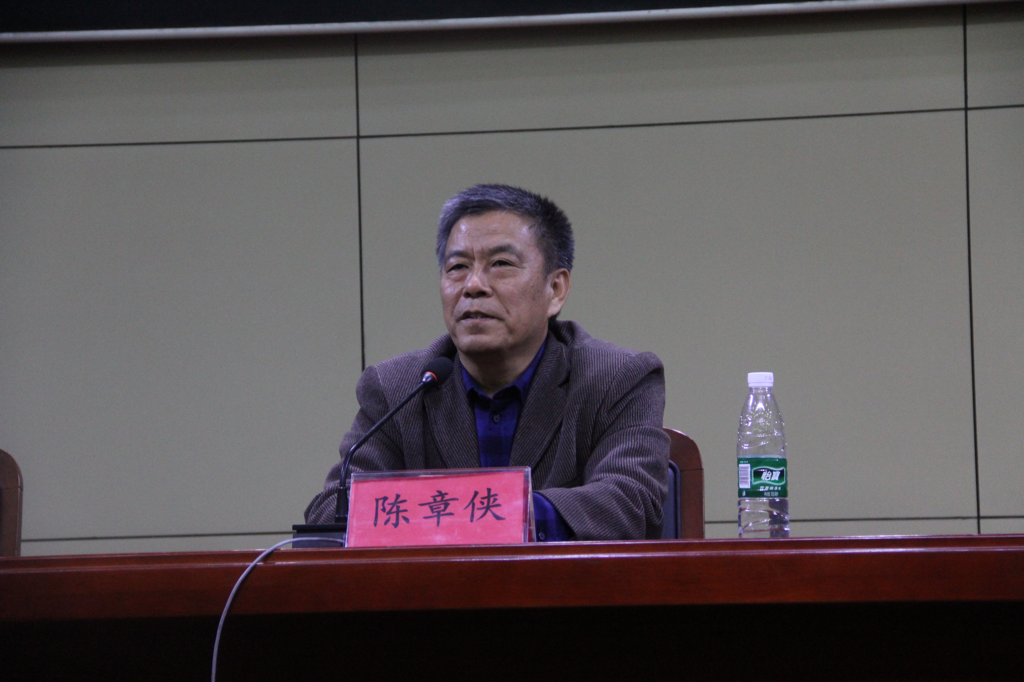 陈章侠讲话,他高度赞扬了计算机系师生在比赛中取得的荣誉,希望全系上下以获奖师生为榜样,把握机遇、学以致用,在更广阔的平台上,锻炼自己,展现自己,再创新高!