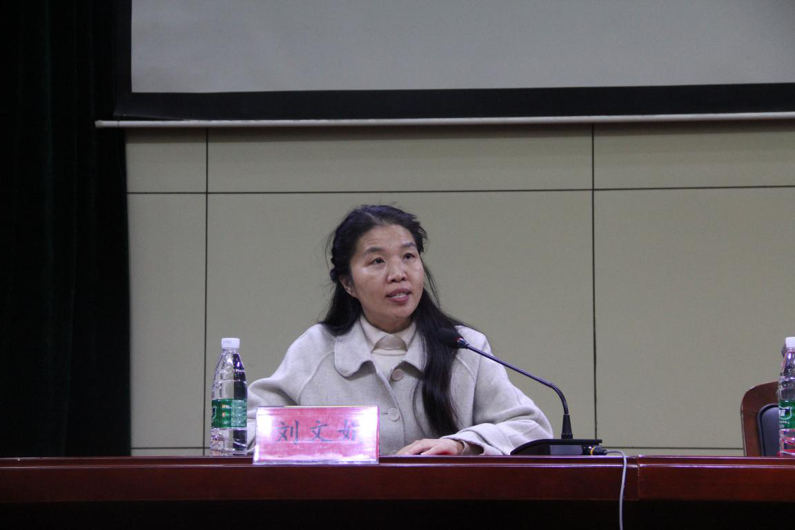 系主任刘文娟发言,她说,2018年计算机系在技能大赛方面取得了优异成绩,对参赛学生和指导教师表示感谢。同时也要看到,在比赛中与省内的强队学校还有差距,今后应依托计算机系育人优势,继往开来、改进不足、努力奋斗,争取更好成绩。