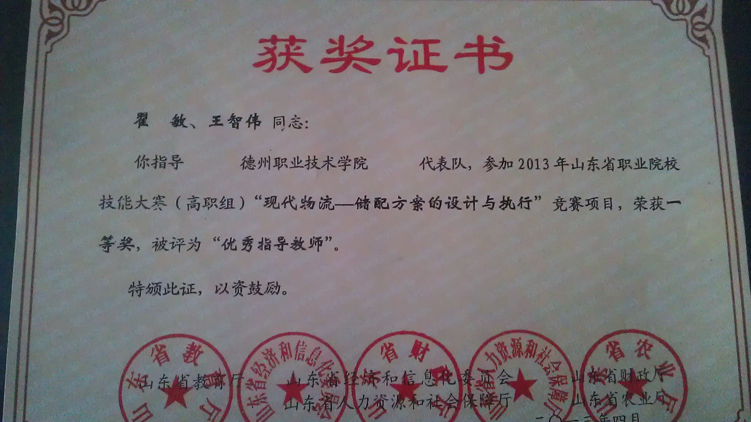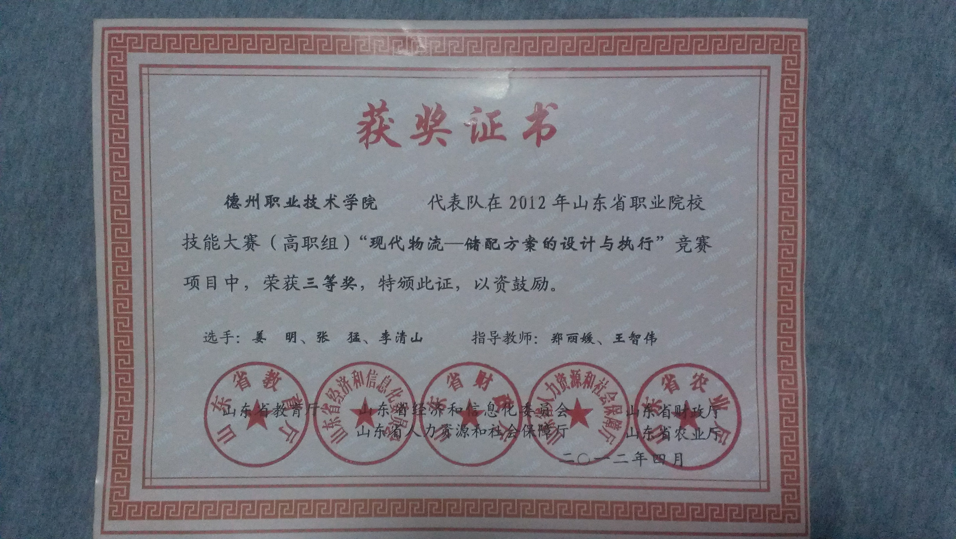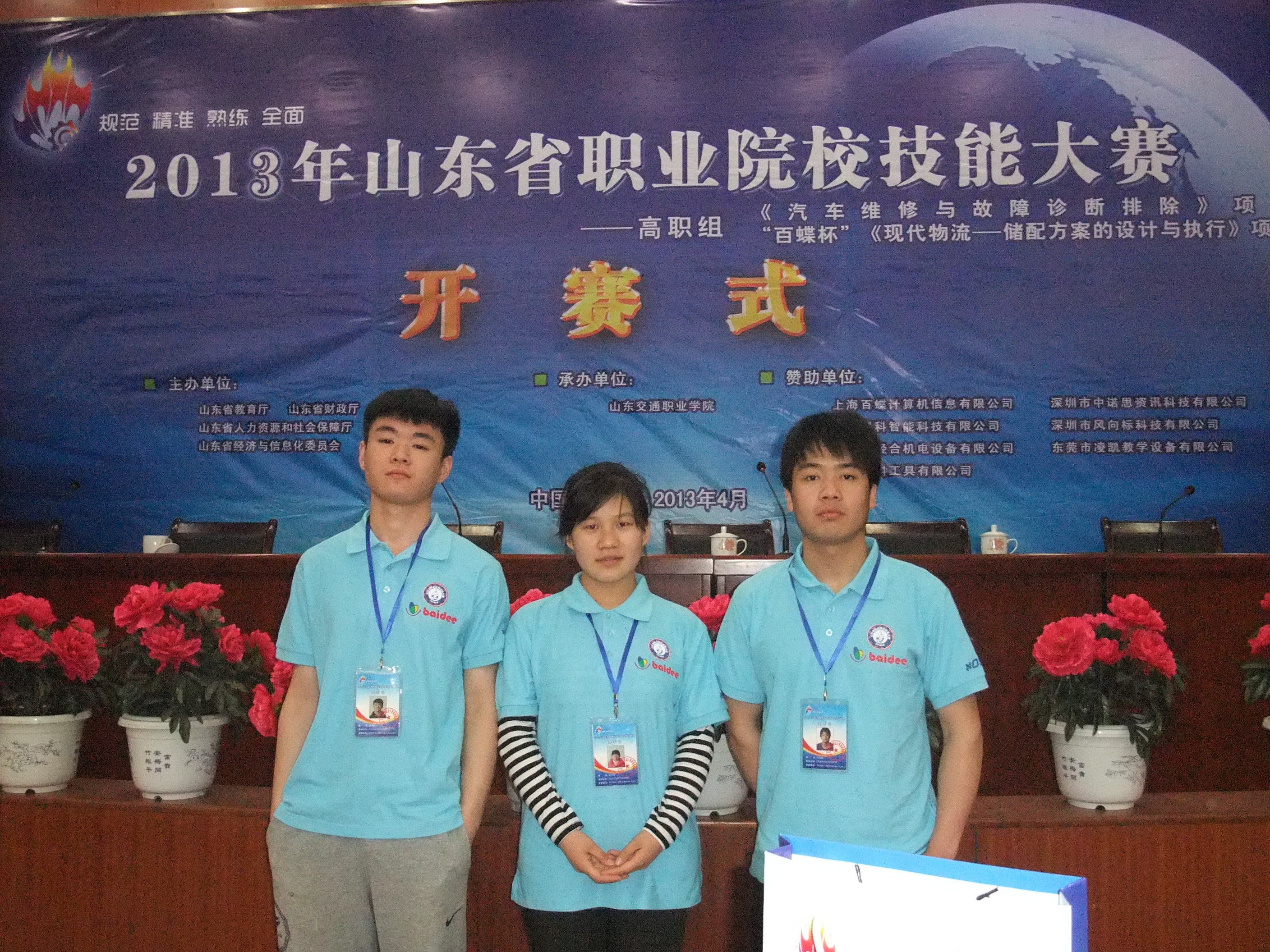 2013年4月15-18日,山东省职业院校技能大赛在潍坊举行。我院代表队在高职组《现代物流-储配方案设计与执行》项目竞赛中发挥出色,取得大赛全省一等奖的好成绩。